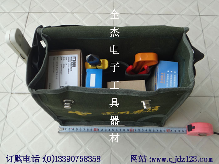 用途:1.电信线路维护人员专用2.采用高纤维帆布制造,坚固耐用,适合装各种钳,剪,锤子等工具3.配有肩带,长度可调整,使用方便4.左右两侧配有插螺丝刀钳子的小袋子,内部有分隔小袋子可以装零散工具5.尺寸大小为:(长X宽X高)=(29X13X15厘米6.重量:0.9公斤